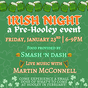 Get a jump on February's Irish Hooley at Waterline! This Friday we're featuring Irish music by Martin McConnell and our resident food truck Smash N' Dash will have some tasty Irish vittles to buy! 6pm