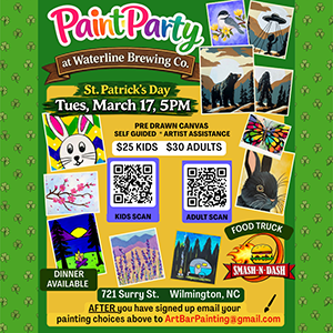Right after the downtown St. Patrick's Day Parade, follow us to Waterline for our St. Patrick's Day Party! It's going to be a great afternoon of music, food, ice cream, and Waterline beers! Starting at 12noon, The Midatlantic will be jamming with plenty of modern and classic Irish music from 12-2pm, and following a short break for sound and musician changes, we're excited to have Martin McConnell finish up the party from 2-4pm! Be sure to check out the food trucks for special menus! Feelin' Swine will have a Reuben loaded potato, Reuben loaded hot dog, Reuben nachos and Irish cream salted caramel brownie! Slainte!